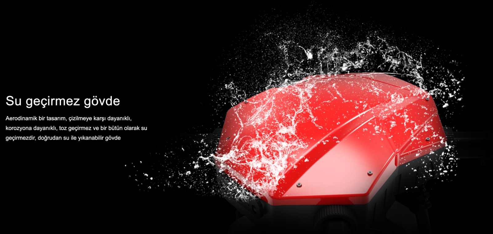 Aerodinamik tasarım; çizilmeye, korozyona ve toza dayanıklı yekpare yapı. Doğrudan suyla yıkanabilir gövde.